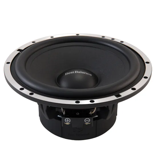 Мидбас калибра 6,5″ (16,5 см) из акустической системы Best Balance B6.5С. Литая корзина, диффузор из целлюлозы с абразивным покрытием, винтовые терминалы и параметры, идеально подходящие для установки в дверь автомобиля.